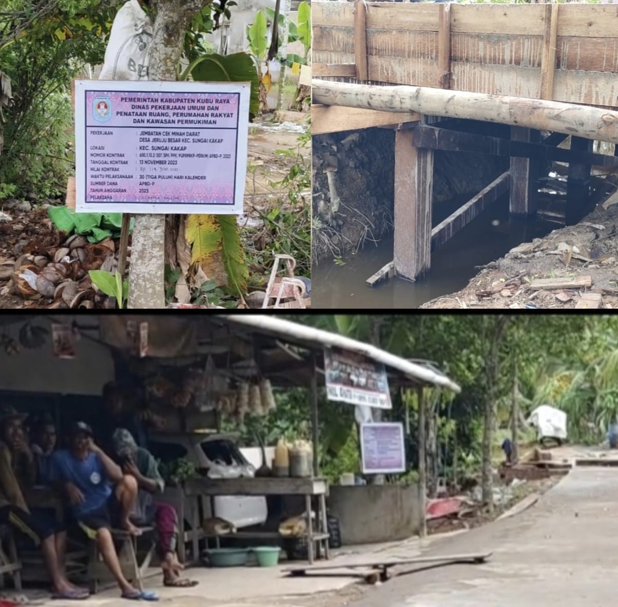 Tim media dan Lembaga Anti Korupsi Indonesia Legalisasi yang di pimpin lansung oleh anggota Legislatif Andi Syafaruddin melakukan investigasi di lokasi proyek pembangunan Jembatan Paret Cekmina Darat yang dilaksanakan oleh CV. Andar Talling dengan nilai kontrak Rp.114.300.000,- dari APBD Kabupaten Kubu Raya Tahun Anggaran 2023. Berdasarkan keterangan pekerja di lokasi, terungkap bahwa pelaksana kegiatan proyek tersebut diduga terkait dengan oknum Kepala Dusun desa Jeruju Besar berinisial MN.