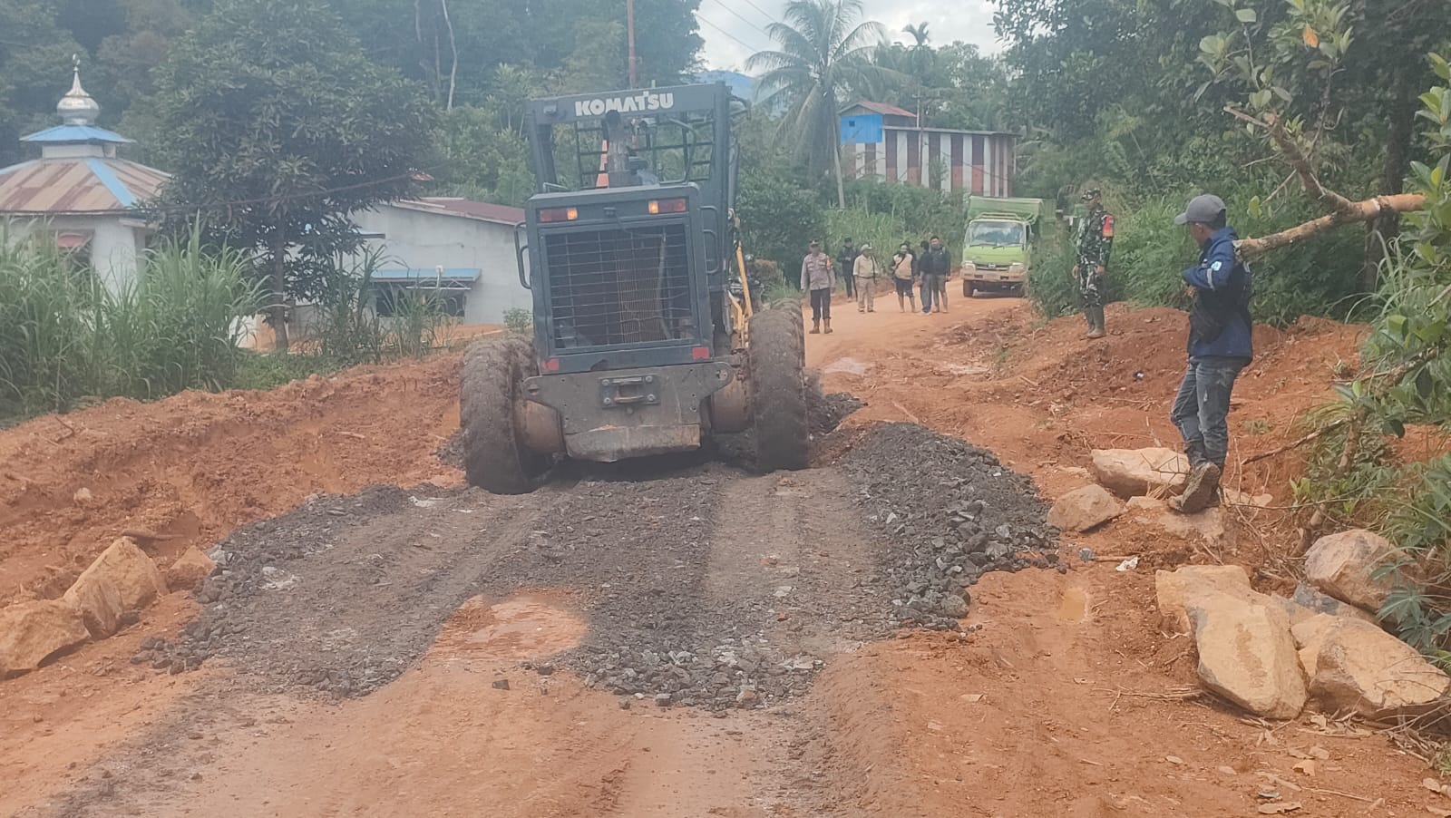 “ Kami bersama unsuf forkopimcam seperti Bapak Camat jelai Hulu, Babinsa Koramil Jelai Hulu, Kepala Desa, pihak perusahaan serta warga masyarakat kedua desa langung melakukan perbaikan jalan dengan menutup lubang dan genangan air menggunakan material tanah latrit dan batuan cor yang diangkut oleh alat berat dari pihak perusahaan. Harapan bersama dengan adanya penimbunan dan pemerataan di beberapa ruas jalan ini dapat segera mengatasi kerusakan jalan sehingga mobilitas warga masyarakat kembali lancar ” Ujar Jumadi.