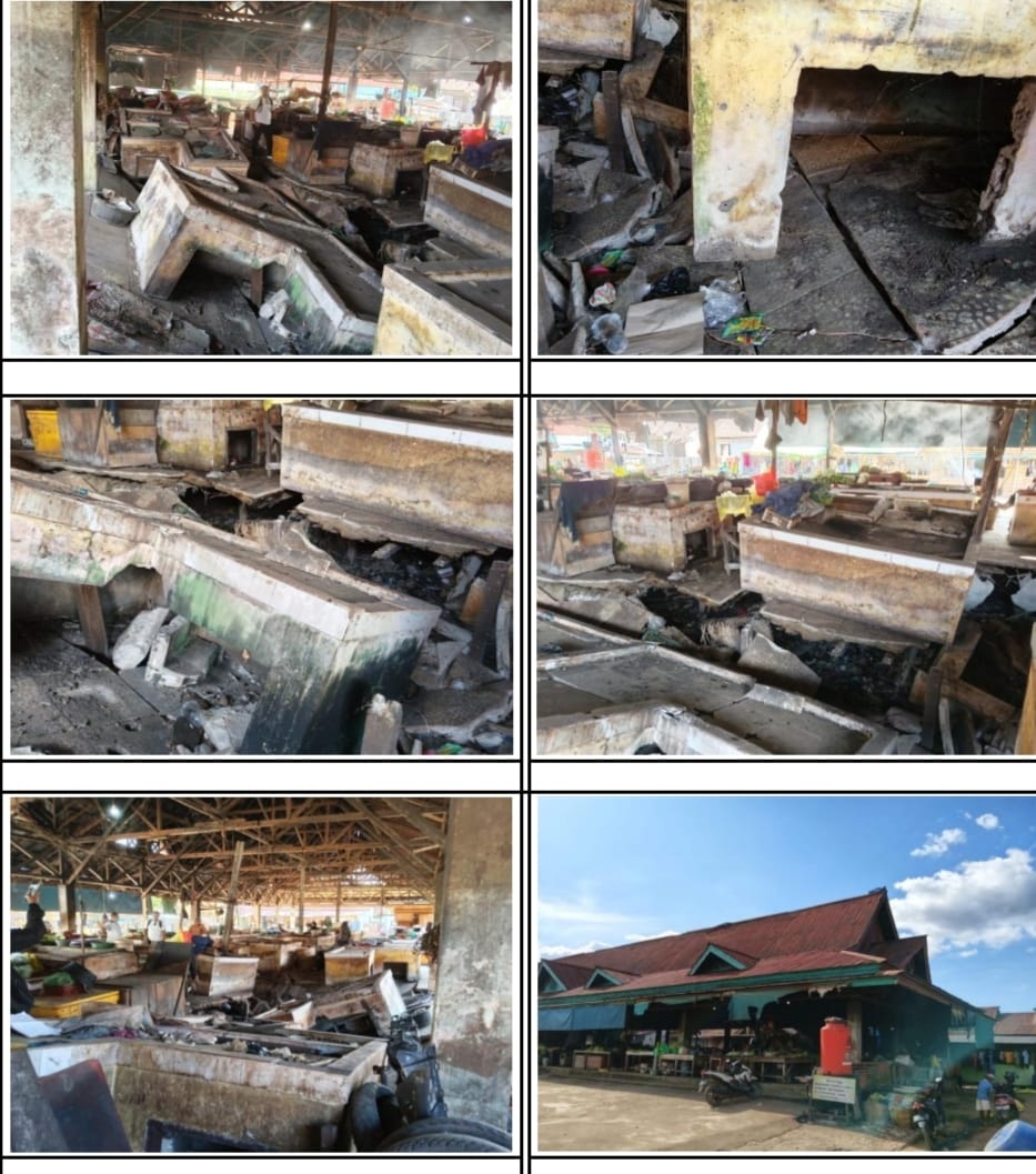 Bangunan pasar sayur Meliau memang sudah cukup lama, saat ini kondisi pondasi sudah hancur, kayunya pada lapuk, sekiranya datang angin kuat bisa- bisa roboh dan di pastikan jika masih ada yang berada di bangunan tersebut akan terjadi musibah kecelakaan kna timpa bangunan tersebut.